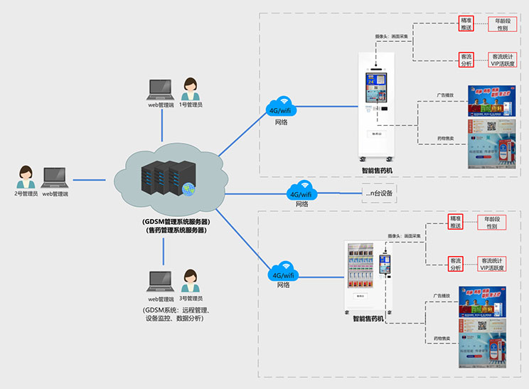 2、一机多用:商品自助售卖,广告精准推送,客流统计分析等。