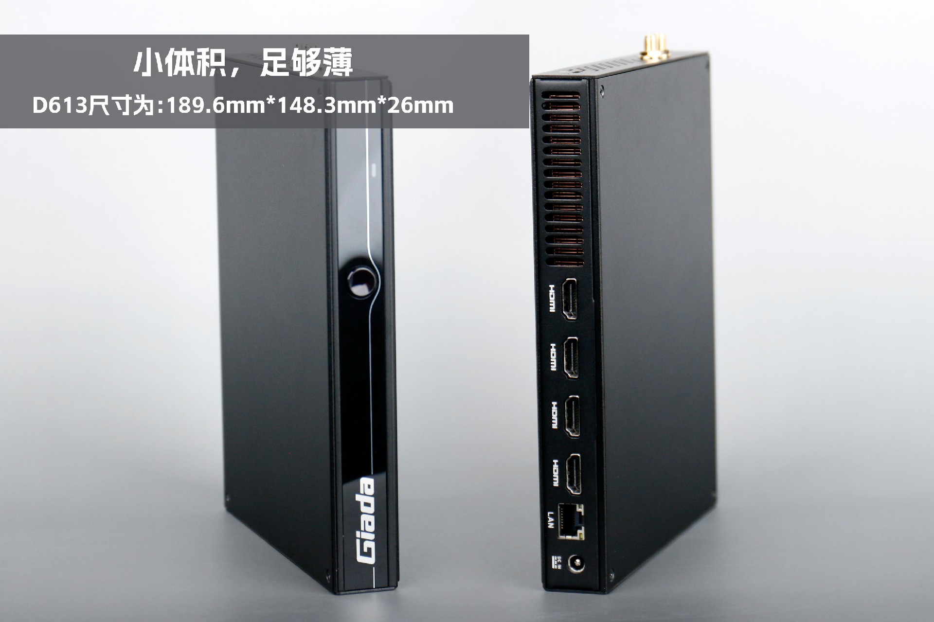 为了契合更多广告形式的技术需求,熊猫科技选择拓展数字媒体播放器品牌线,推出多屏4K显示利器——D613,实现一个机器同时控制4台显示器并实现4K 高清流畅播放画面。D613拥有60HZ视频编码和解码能力,将D613与显示屏结合,并放置在高流量位置,能为路人提供令人惊叹的视觉效果和身临其境的多媒体体验。