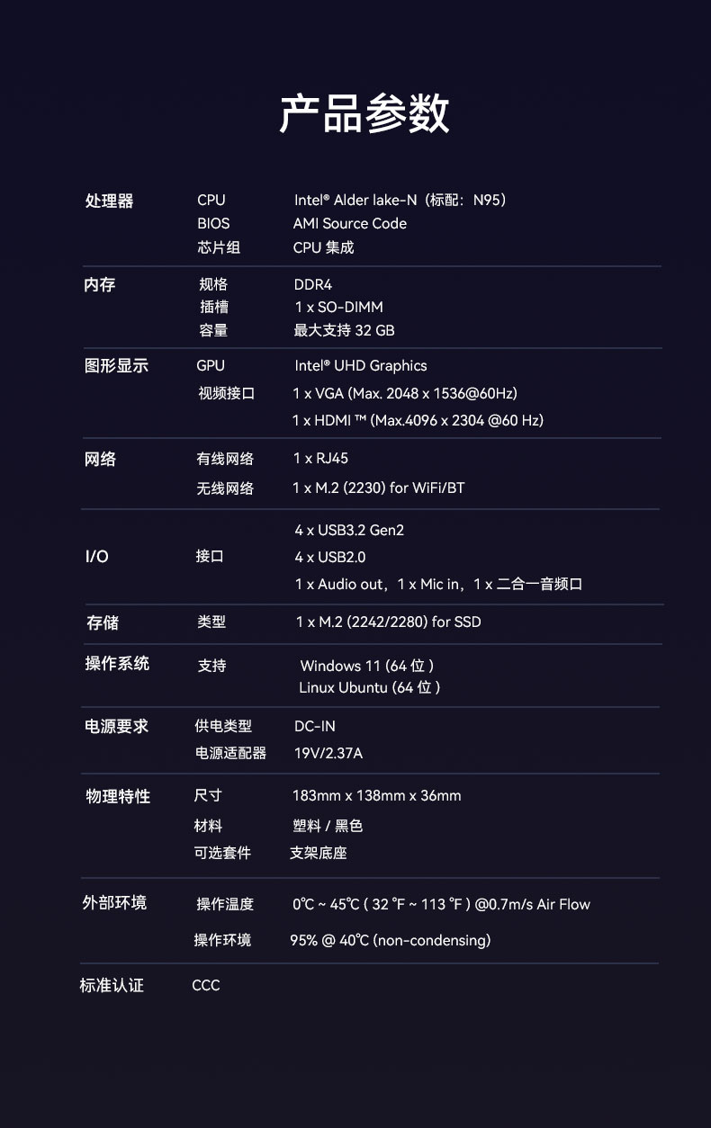 熊猫桌面云终端Y-BOX S2作为全新一代的虚拟化主机产品,凭借其出色的便携性、优秀的办公娱乐体验和高效节能的环保设计,在学习、办公和娱乐等各个领域展现出卓越的适应性,可以广泛应用在教育、办公、金融、家用、医疗等领域,为用户带来丰富多彩的数字化体验,针对针对客户个性化需求,支持ODM/OEM/JDM定制化服务。Y-BOX S2详细的产品性能参数如下: