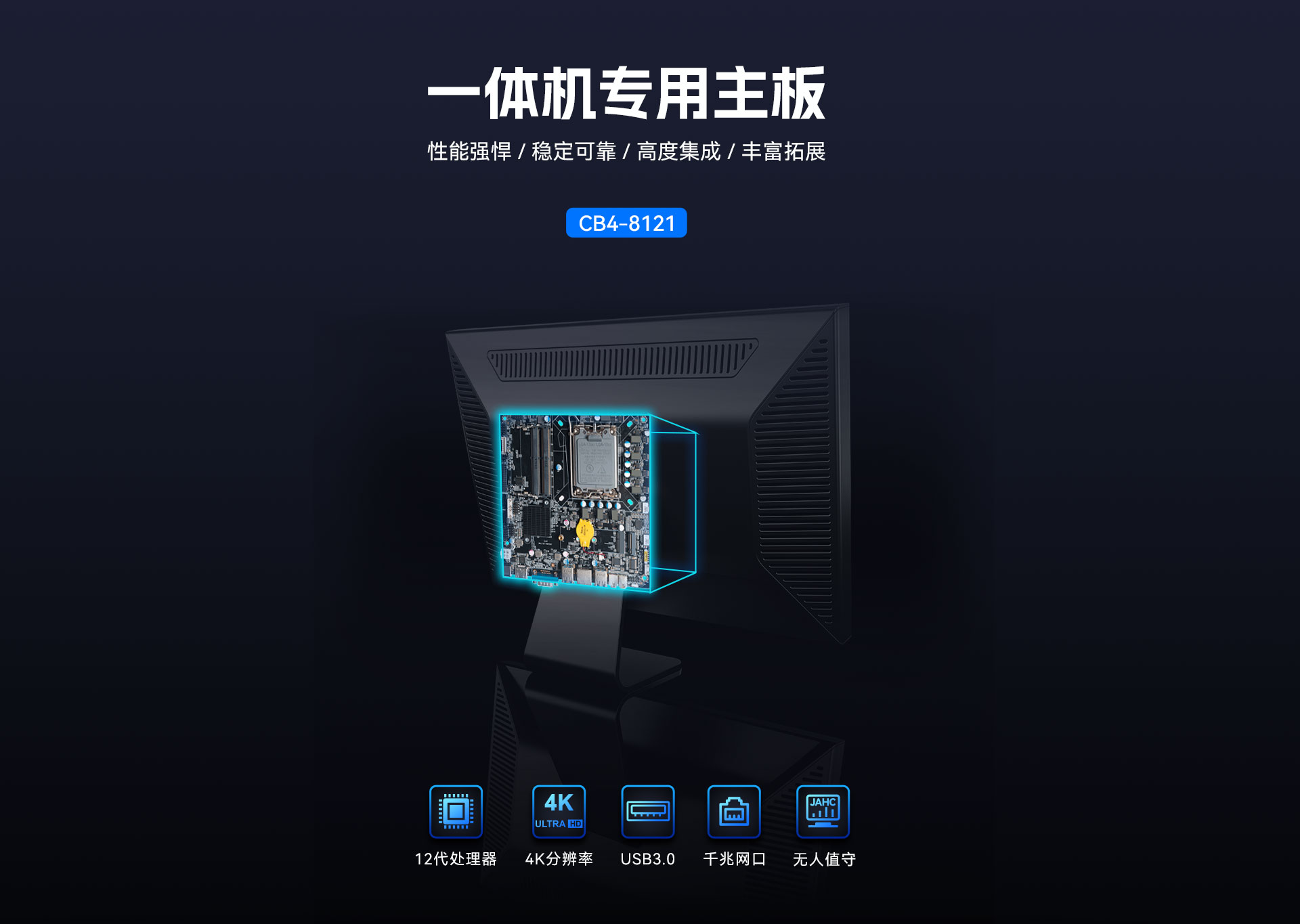 而一体机主板作为一体机的核心组件,其性能直接决定了整机的表现,熊猫科技根据以上的市场情况及客户需求,推出这款高性能的基于Thin mini ITX一体机标准设计的一体机专研主板CB4-8121。