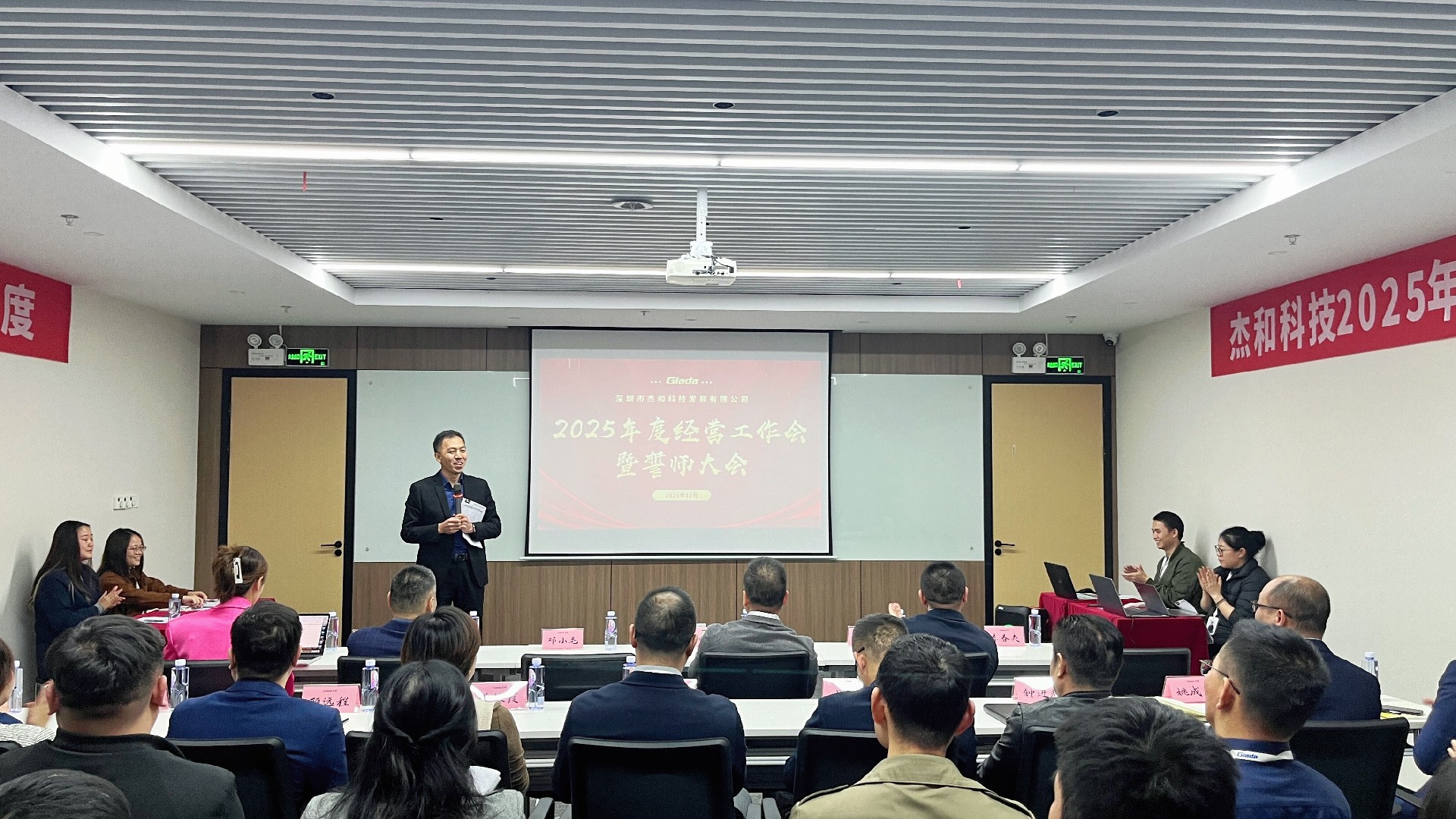 目标的达成,离不开每个中后台部门的通力合作和全力以赴。在此次大会上,硬件开发部、软件开发部、杰拓工厂等9个部门负责人不仅详尽规划了2025年的工作蓝图,更坚定表态,将作为业务部门最坚强、最可靠的后盾,确保前线作战的胜利无后顾之忧。
