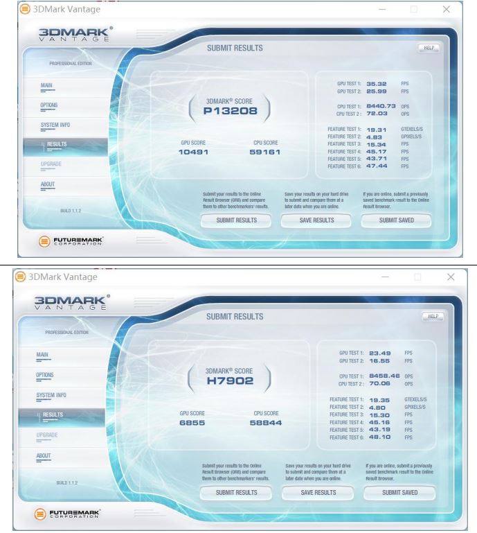 3D Mark Vantage是一款3D图形性能评测软件,主要用于评测电脑的显卡和处理器的性能。在本次测试中,熊猫按照画质等级,记录了性能级(Performance,P)和高端级(High,H)两份数据。