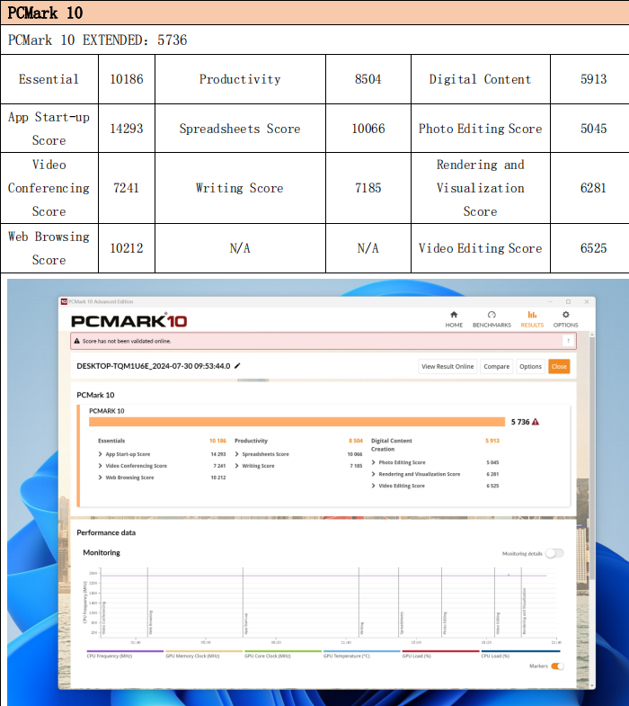 系统综合性能方面,WA814同样表现出色。PCMark 7总分10385,PCMark 8得分4563,PCMark 10得分5736,说明它不仅能应对复杂应用程序,还能胜任高效率的多任务办公。