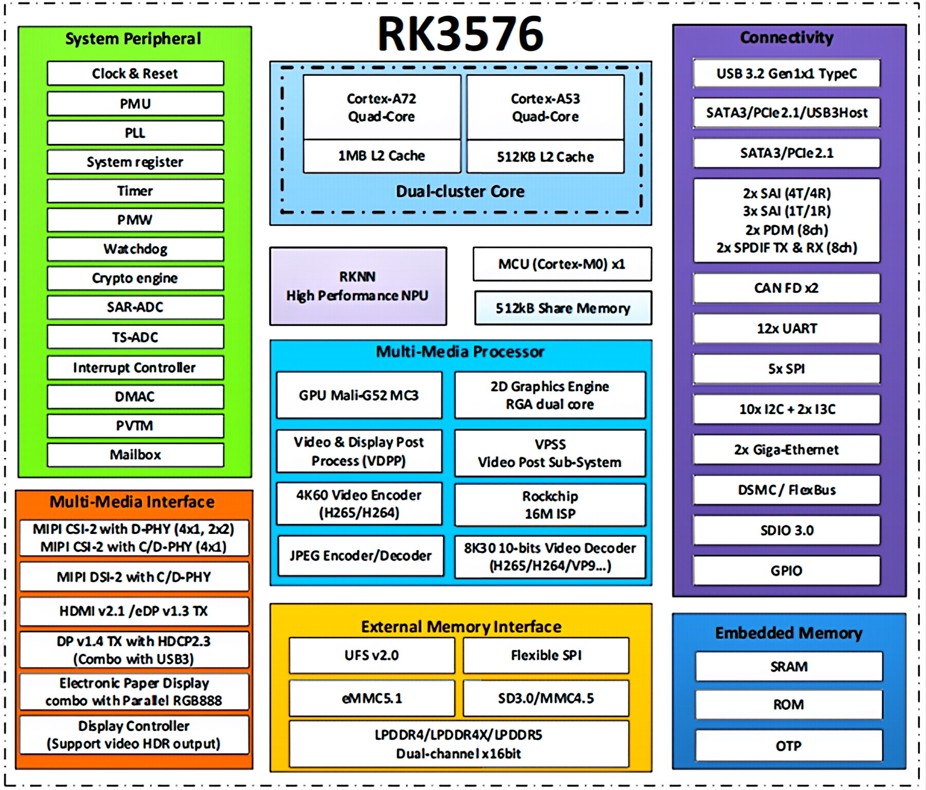 IB3-708-V0搭载8核(4核Cortex-A72 + 4核Cortex-A53)架构处理器,并配有ARM Cortex-M0协处理器,主频最高可达2.2GHz。集成6 TOPS NPU,为本地AI推理应用提供强劲算力支持,拓展了智能应用的实现可能性。
