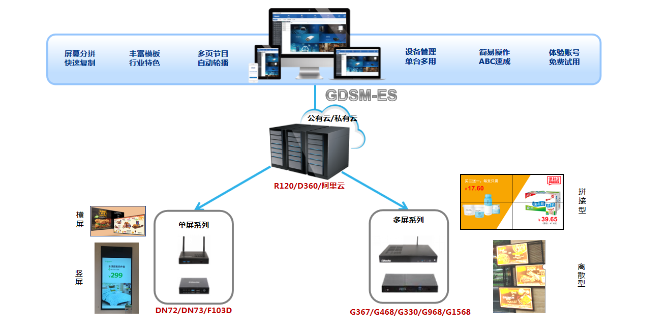 除了提供软件,熊猫科技还可提供与该系统适配的媒体播放器,从商用级到工业级,从2k分辨率到4K分辨率,从多屏拼接墙到单屏点餐牌,从外挂播放器到可插拔模块,品类齐全。