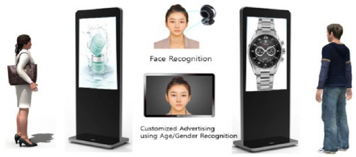 正如一开始提到的,基于GDSM智慧商显系统平台和熊猫多屏拼接播放器的精准信息推送方案,整合了人工智能技术,在5G或有线网络的支持下,能够完成针对不同消费者推送不同消费者画像对应的产品。熊猫拥有边缘计算能力的G系列多屏拼接播放器,适合作为AI人脸识别的硬件基础平台。通过训练完善的人工智能算法,针对不同的消费者标签,推送不同的广告信息。