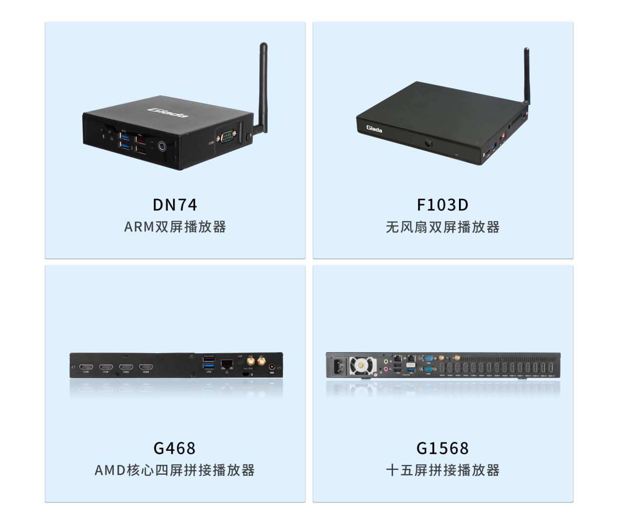 面对需求多样的市场环境,除熊猫G330六屏拼接播放器外,熊猫科技相继推出了G468四屏拼接播放器、G968九屏拼接播放器、G1568十五屏拼接播放器等多平台、多规格产品,均能够与熊猫GDSM商显系统平台完美适配,为商家的实际需要,供应选型完整的家族式产品。