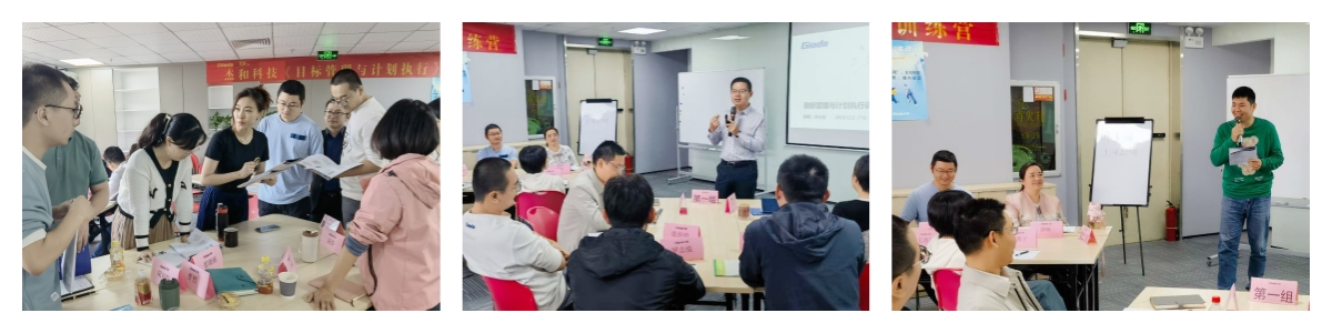本次培训外聘了专业的组织与人才培养专家进行授课,在培训课程中,熊猫的国内与国际营销中心、产品部等,以及杰拓管理层的各个小伙伴分为五个小组,通过小组讨论、上台发言、随堂测验等互动形式,学习并了解到基于战略目标的组织执行力的重要性,目标设定的SMART原则与时间管理的方法,以及执行力提升的四大动力系统,现场学习氛围活跃,求知欲望强烈。