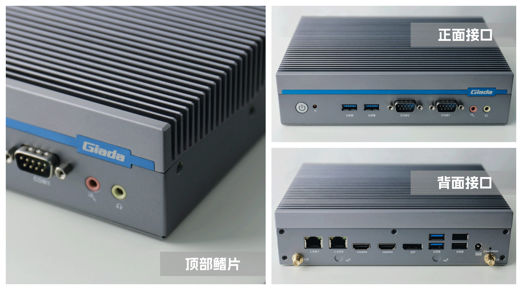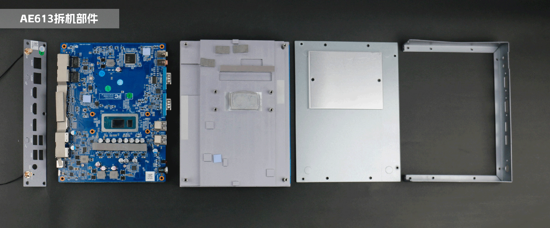 嵌入式整机AE613外包装采用环保材料设计,内部配备适配器、AC线、天线棒、螺丝包,满足通用需求,整机外观机壳顶面采用一体式铝板增高的鳍片散热设计,整机结构采用全铝设计保证散热与抗压性,通过熊猫特有无风扇静音散热设计使整体散热效果非常优秀,同时营造出极致安静的工作和使用环境,无噪音,更防尘。