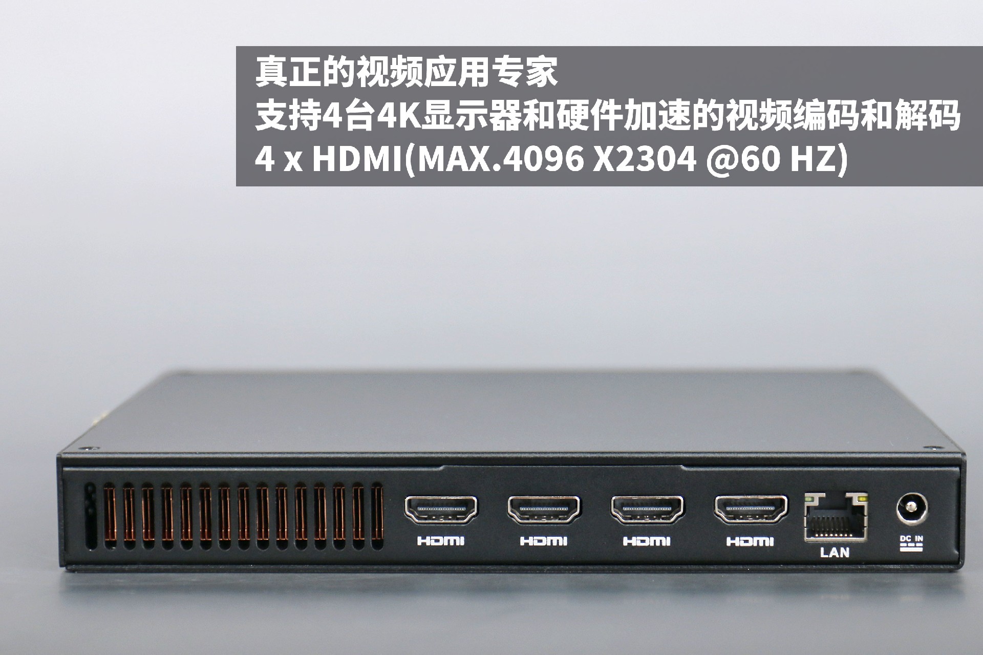 支持4 x HDMI 2.0接口,提供多达4屏4K显示(4096 x 2304@60Hz);支持1 x RJ45千兆网口,1 x E-Key M.2 (2230) for Wi-Fi/BT, 支持Wi-Fi 5, Wi-Fi 6, Wi-Fi 6E (CNVi),具备强大的网络通信能力。支持1 x USB Type-C3.1,1 x USB3.1 2 x USB2.0,1 x RS232,1 x二合一音频接口,拓展能力丰富,可以连接会议大屏、摄像头、麦克风、音响、U盘、扩展坞、无线投屏等设备。