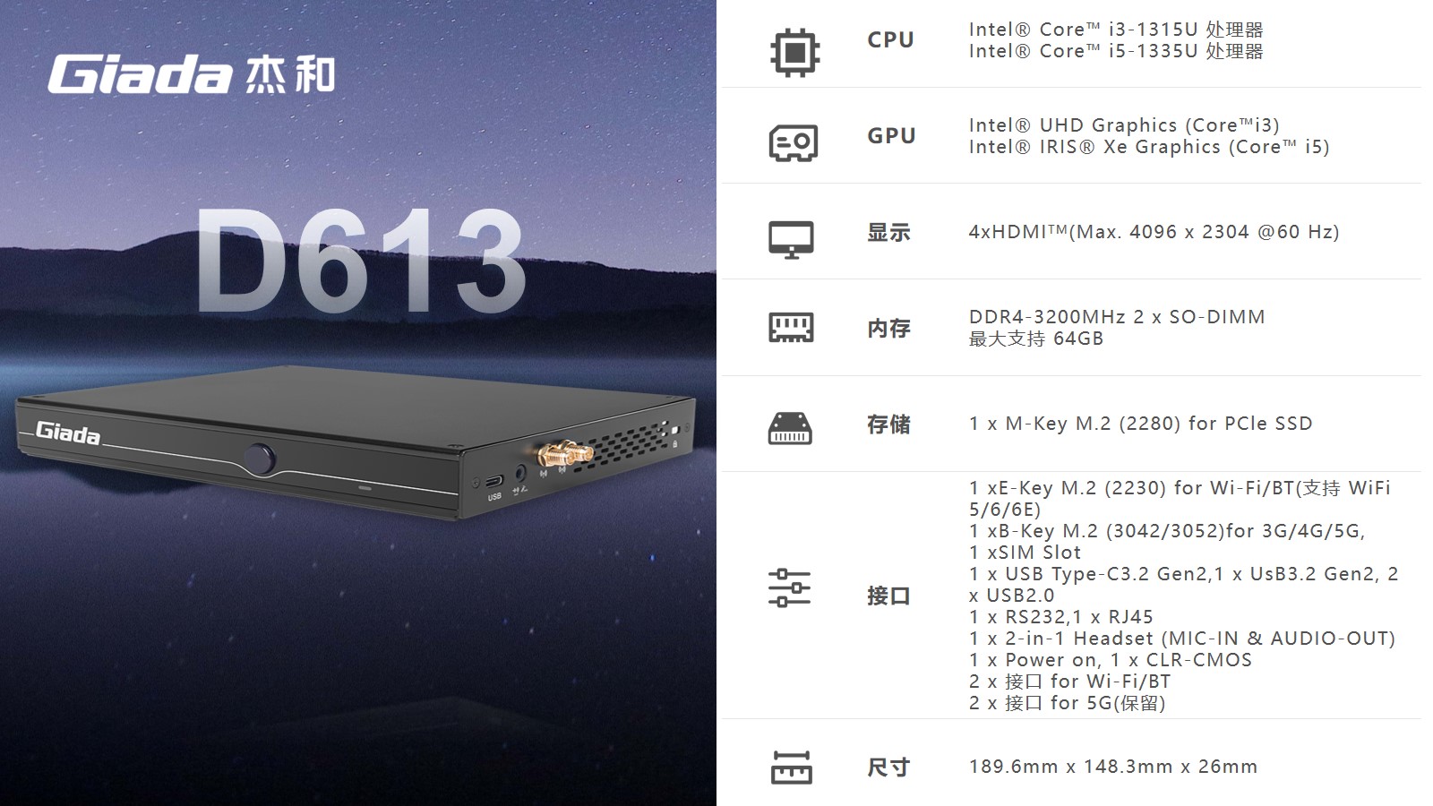 熊猫科技D613可选配Intel®第13代AlderLake i5-1335处理器,作为家用迷你主机来说,足够大的内存容量也可以提升迷你主机的性能表现,更好地支持多任务处理,大型应用程序的运行以及高清视频编辑等任务,拥有的2个SO-DIMM插槽,内存DDR4最大支持64GB的内存容量可以减少系统对硬盘的依赖,提高系统的响应速度。
