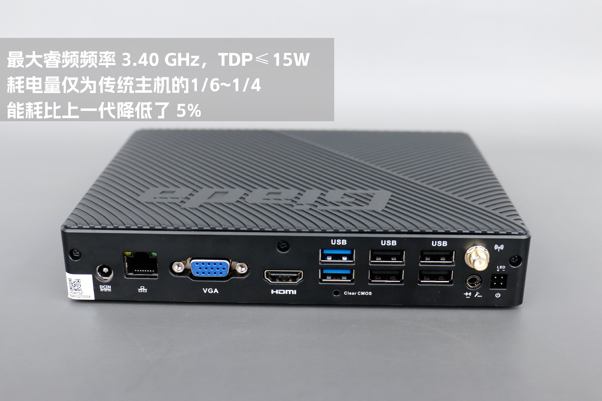 2、最大睿频频率 3.40 GHz,TDP≤15W,耗电量仅为传统主机的1/6~1/4,能耗比上一代降低了 5%;