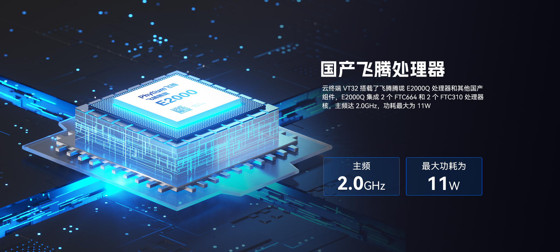 采用国产飞腾腾珑E2000Q处理器,主频2.0GHz