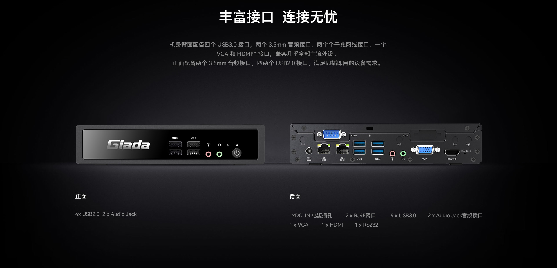 音频接口 4 x Audio Jack(前后各2个)